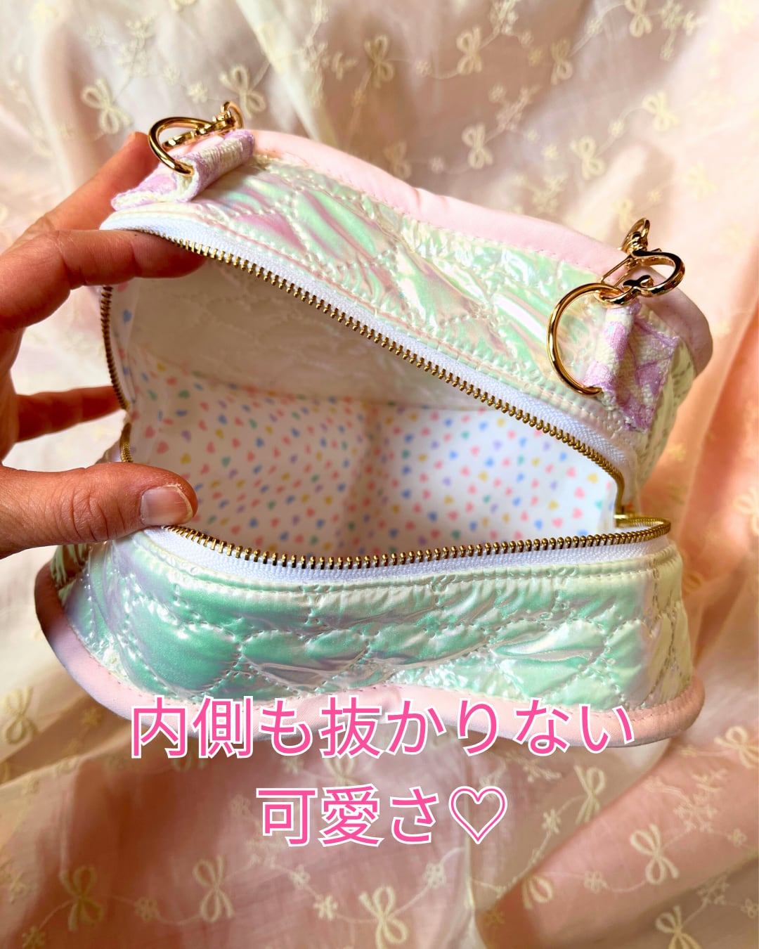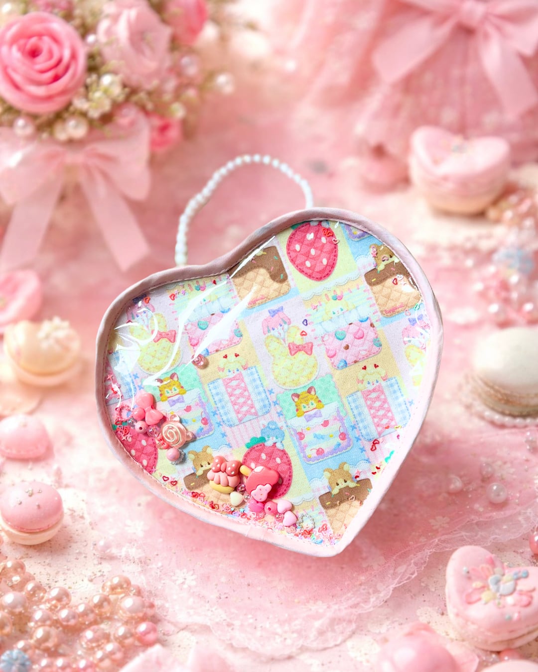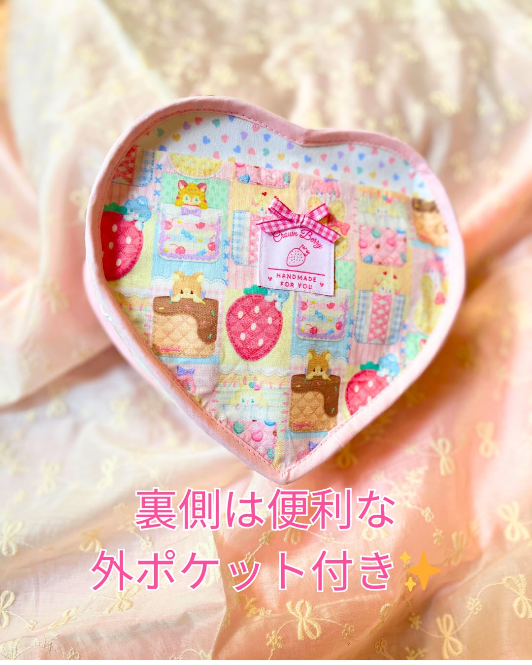 ハート型が特徴的なバッグに、